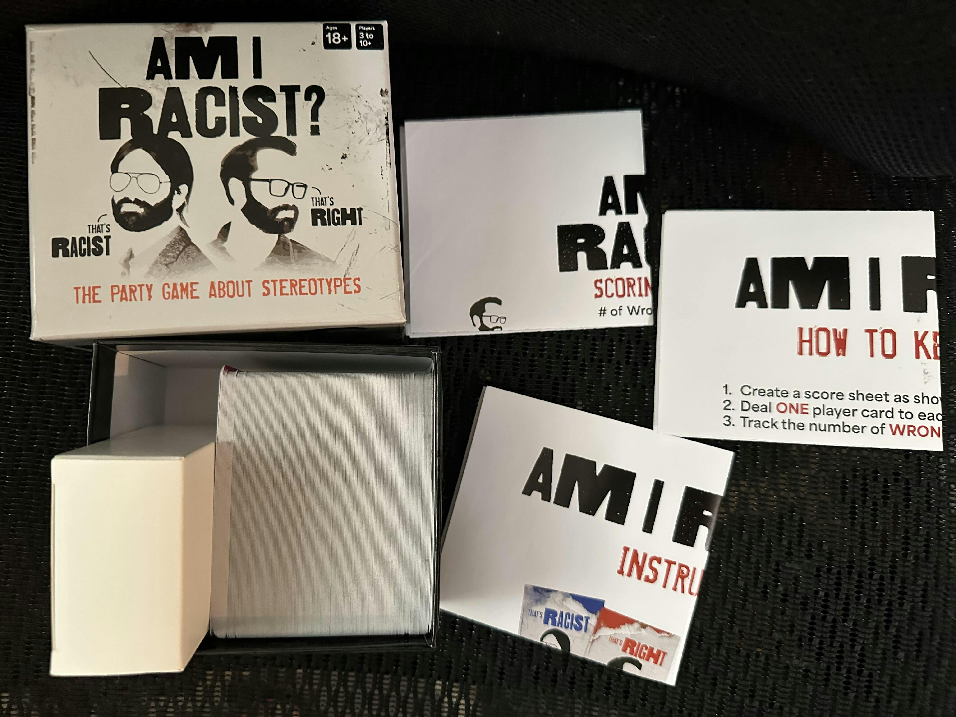 Explore the world of diversity, equity, and inclusion in a hilarious party game that will leave you asking "Am I Racist?" Each round, one player draws a stereotype or debate card, then everyone has to do the work to decide if it's right or racist.
