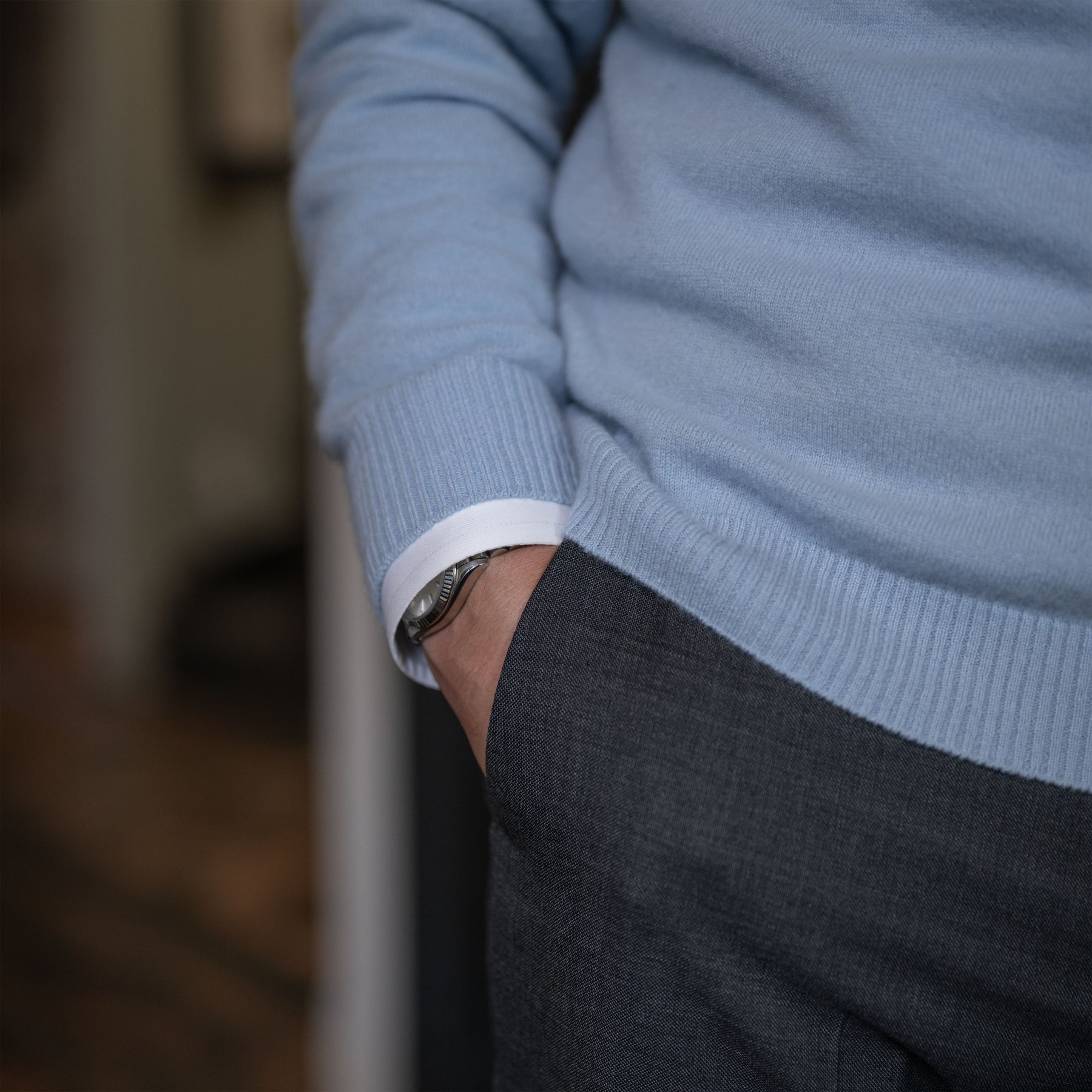 A morning stroll through quiet gardens. The Luxembourg crewneck is spun from ultra-soft fifteen-gauge pure cashmere. With its smooth, lightweight drape and flattering structure, this sweater brings understated polish to any occasion.